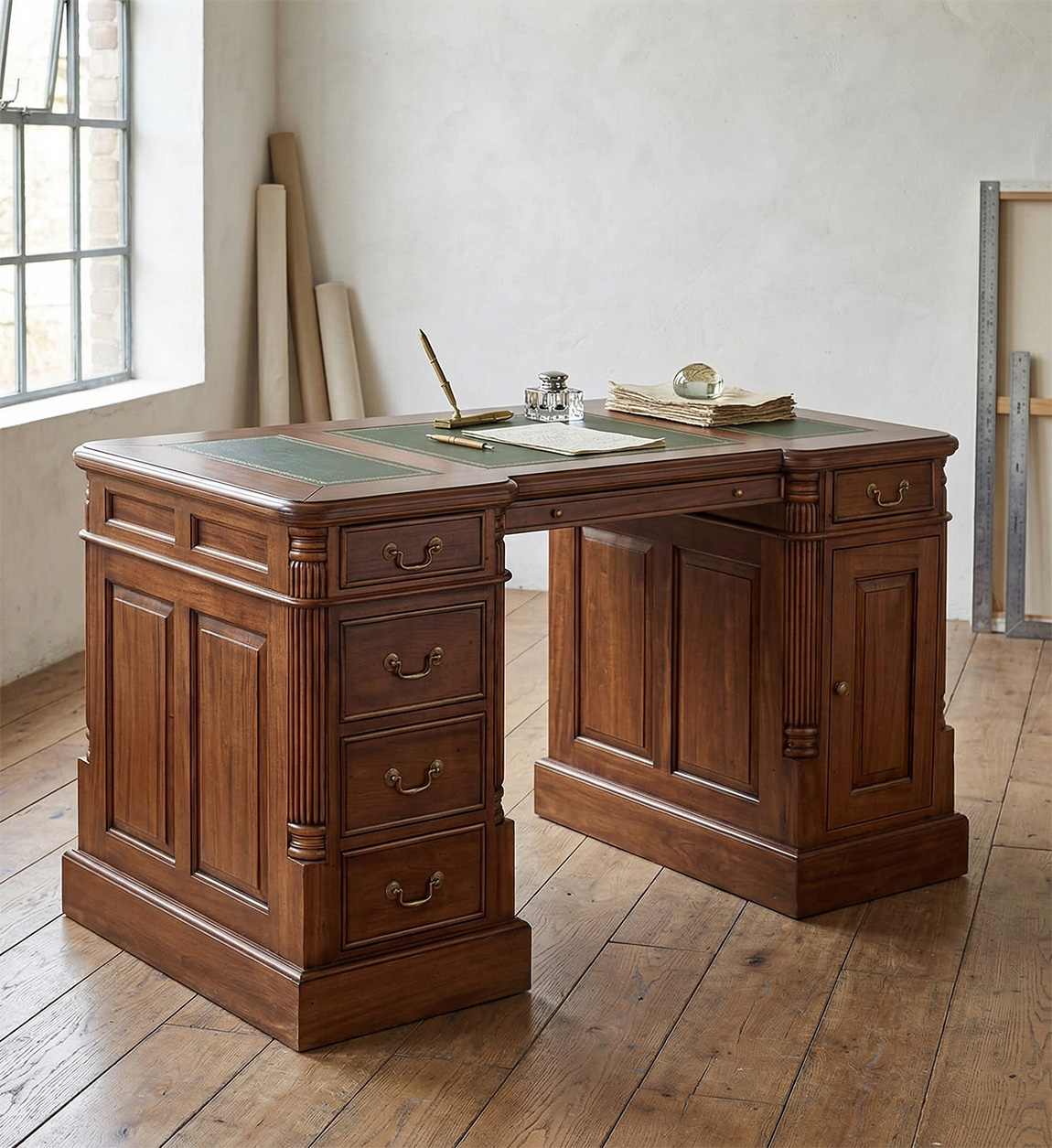 BUREAU VICTORIAN 6 TIROIRS 1 PORTE 140*70*78
