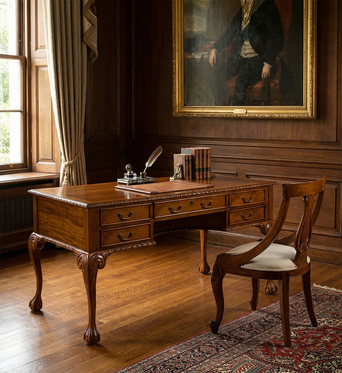 ESCRITORIO VINTAGE CHIPPENDALE 5 CAJONES