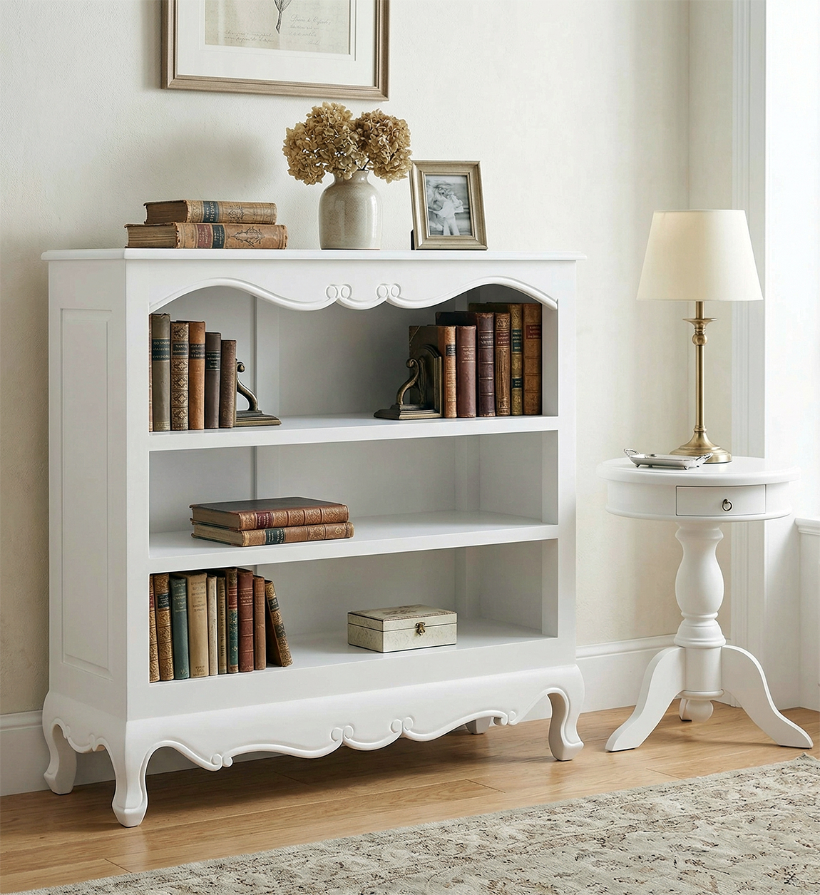 MESA AUXILIAR NEWPORT REDONDA BLANCA 2 CAJONES 50Ø*65